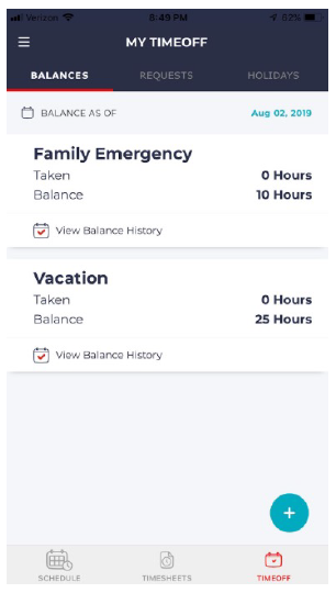 - Tap on the “Time Off” icon from the bottom of the menu bar.