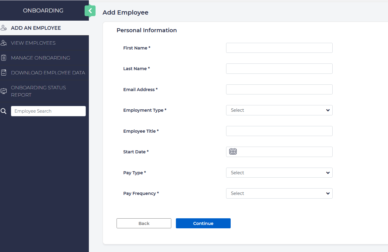 Provides ability to add new employees to the system.