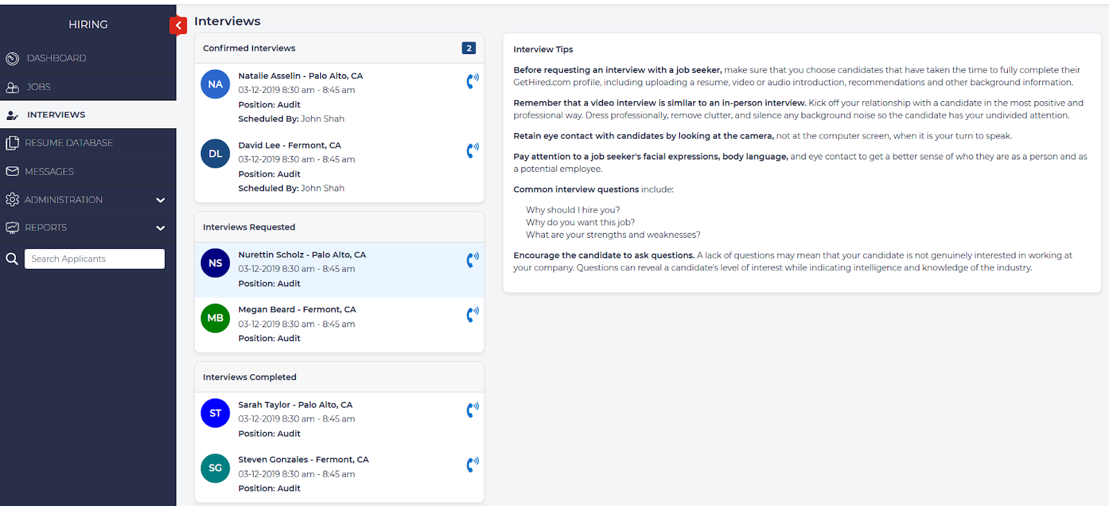 - Interviews Requested – Scheduled interviews that are waiting for confirmation from the Applicant.