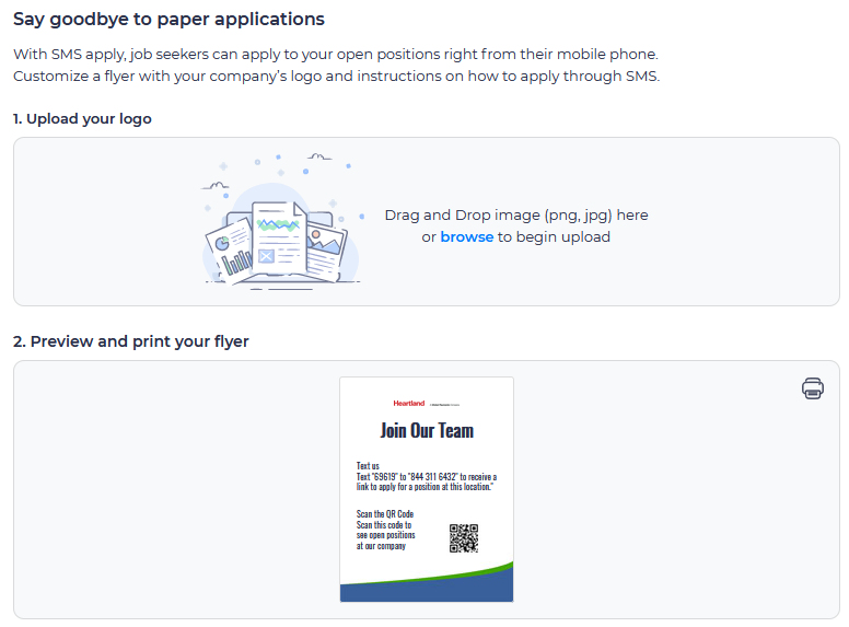 Create and download a flyer or poster with a method for advertising your careers page, so that potential employees may apply for positions directly through their phones.