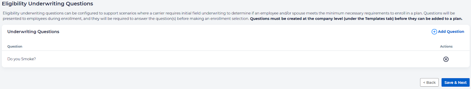 If you have set up any Eligibility Underwriting Questions, you may choose to include these to be necessary for enrolling in the plan.