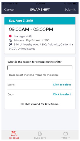 - Under the shift you wish to swap, tap on “Swap Shift.”