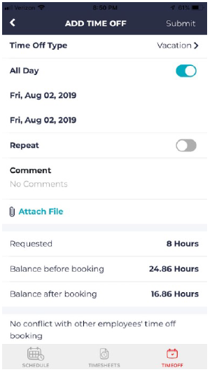 - Tap on the “Time Off” icon from the bottom of the menu bar.