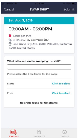 - Tap on “Swap Shift” under the shift that you wish to swap.