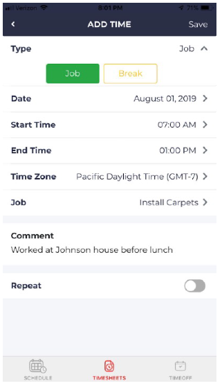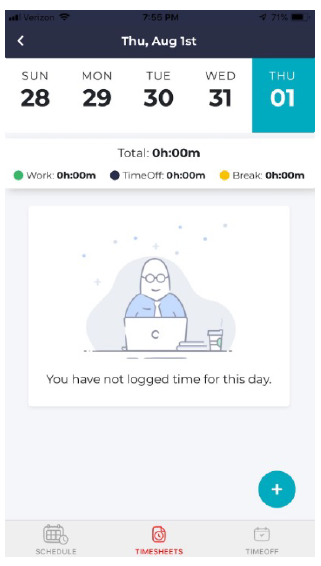 - Tap on the “Timesheet” icon from the bottom menu bar.