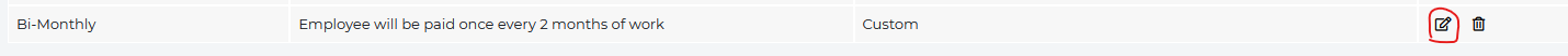 You can then edit an existing frequency by clicking on the edit button on the right of the specified pay schedule: