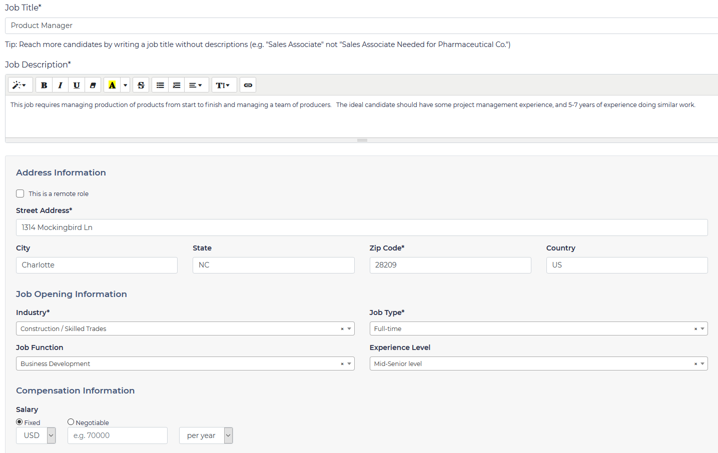 - Indicate whether this is a featured job - selecting this will display this job at the top of your careers page.