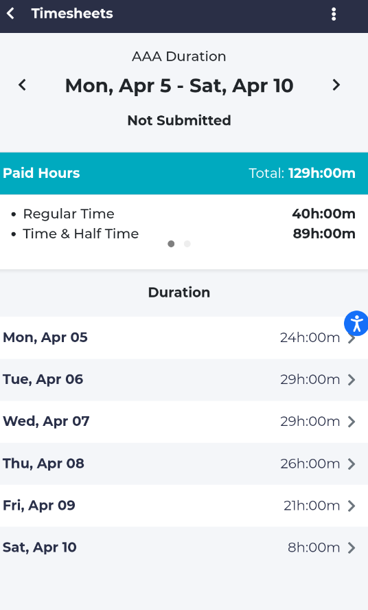 If you click on any one of the timesheets, you can see the details for the hours that have been recorded for the employee in question.