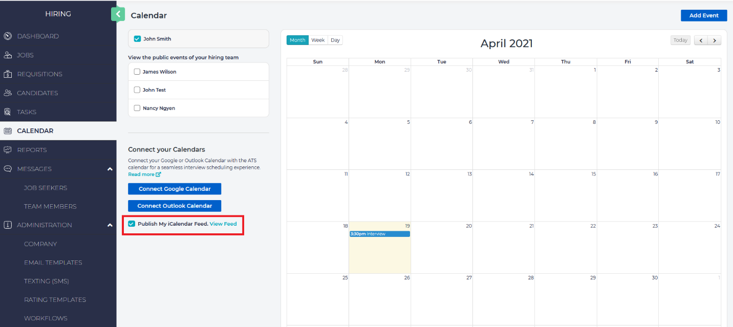 You now can publish your Hiring calendar with ICalendar to increase the convenience of scheduling across multiple applications.