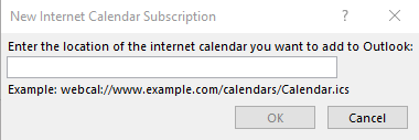 - In the window that pops up, paste in the URL that you copied from your iCalendar feed: