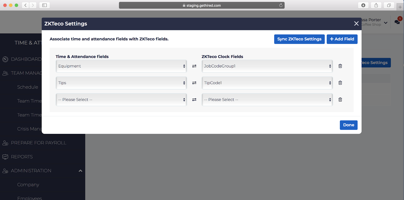 - When finished, click Sync ZKT Settings. Click Done when finished.