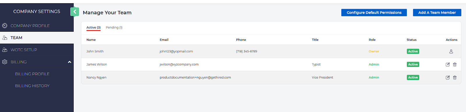 Here you can see a list of the different permissions that you can assign to individual Team Members.