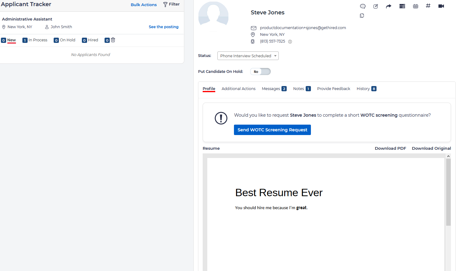 Each candidate may be assigned a rating during hiring. Users with this access can add a ranking to any job applicants for the purpose of making a hiring decision.