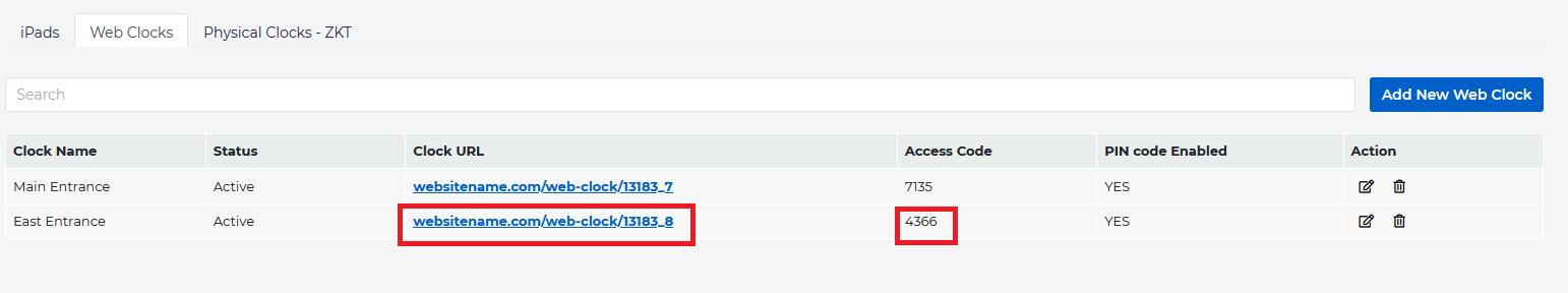 Clock on the blue Add New Web Clock button on the upper right.