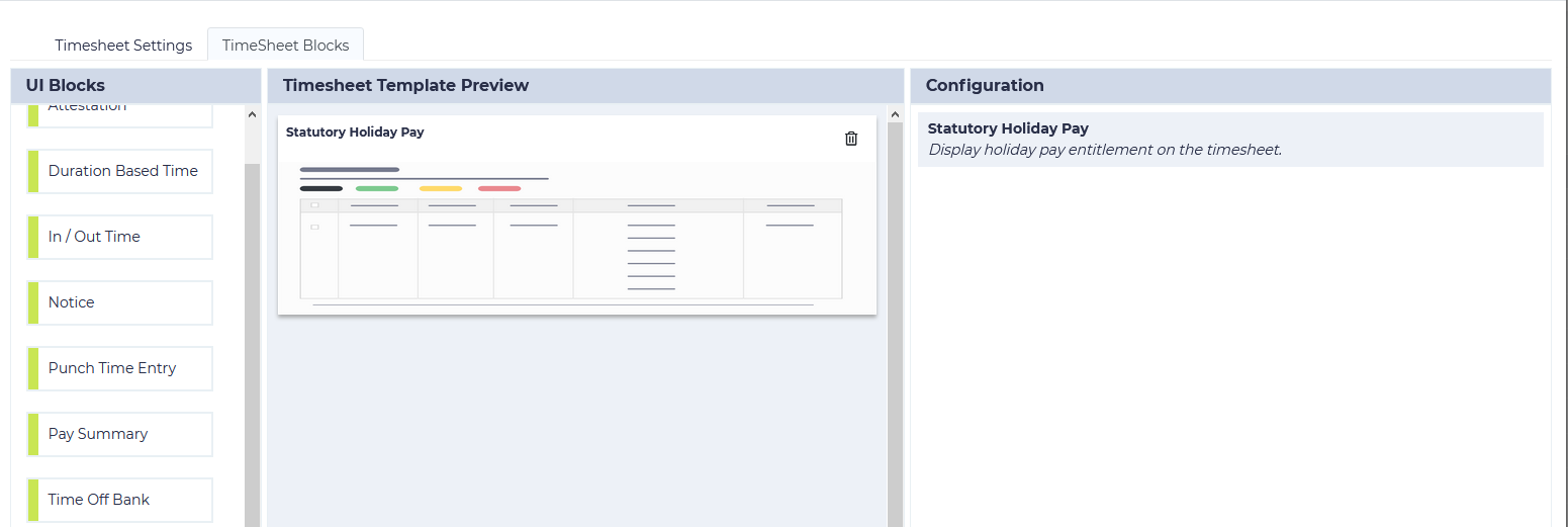 You can access Timesheet Blocks by navigating to Administration - Timesheet Settings, and when creating a new template, select the Timesheet Blocks tab.