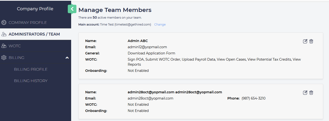 Administrators can also see and edit this information by clicking on the edit button next to any existing team member.
