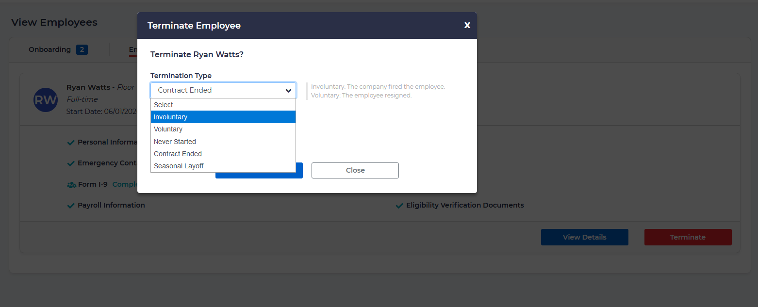 Terminate Employee