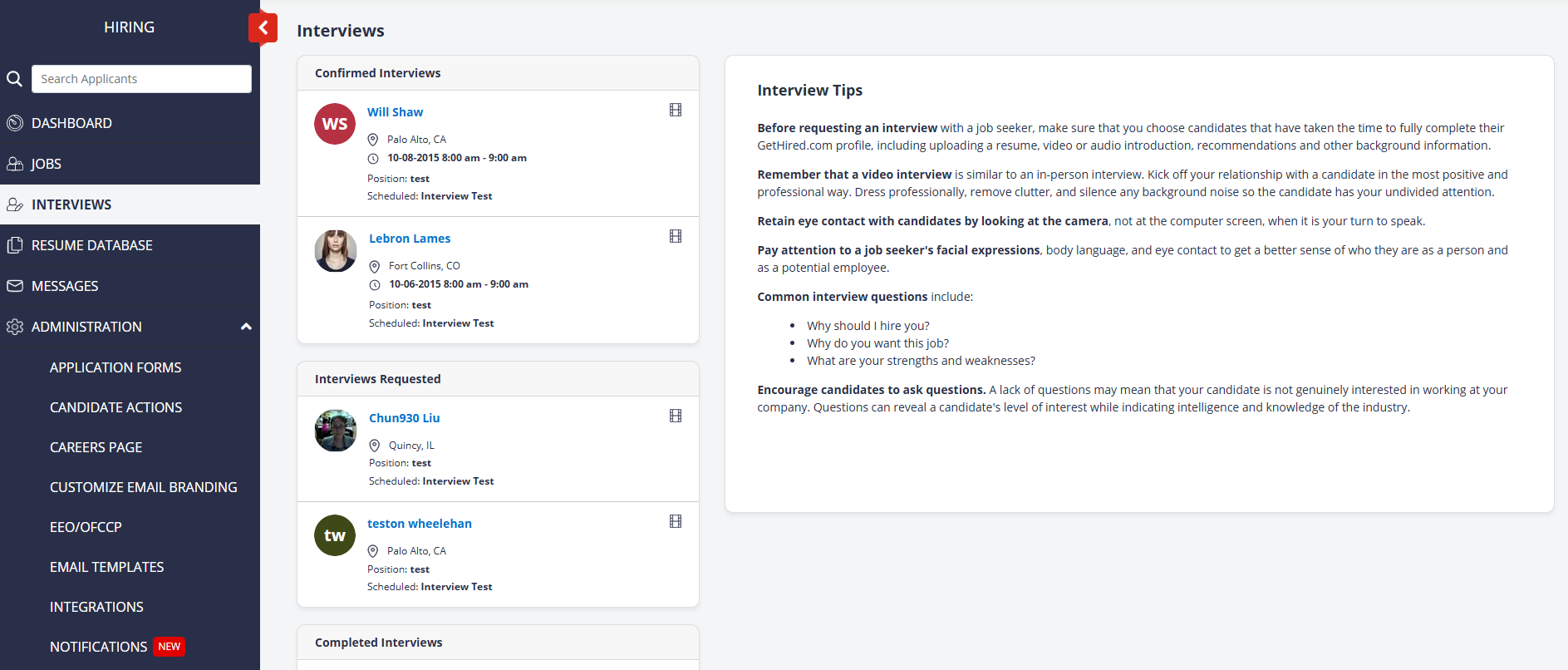 - Interviews Requested – Scheduled interviews that are waiting for confirmation from the Applicant.