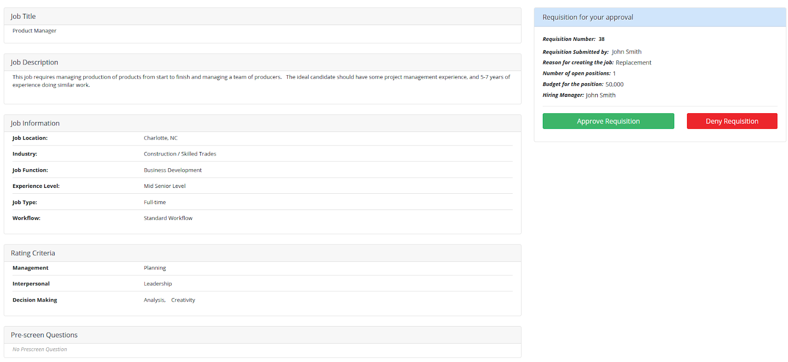 Selecting this link will bring you to a page like this, where you may review the request, and click Approve Requisition or Deny Requisition.