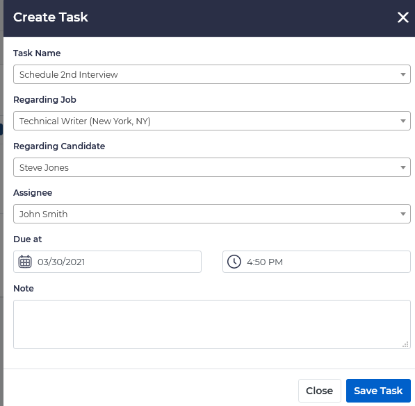 You may also create an event, such as an interview from here, which will appear on the Calendar.