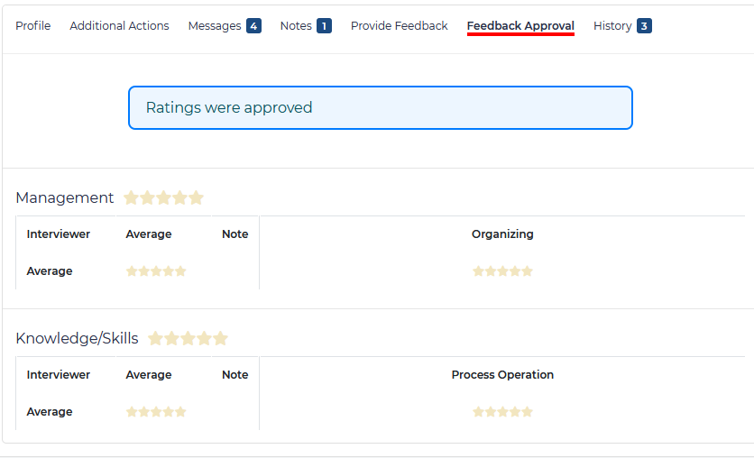 Feedback Approval – Here you can provide final approval of the above feedback ratings.