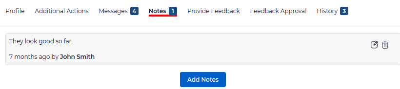 Notes – here you may view or add any notes regarding the candidate.