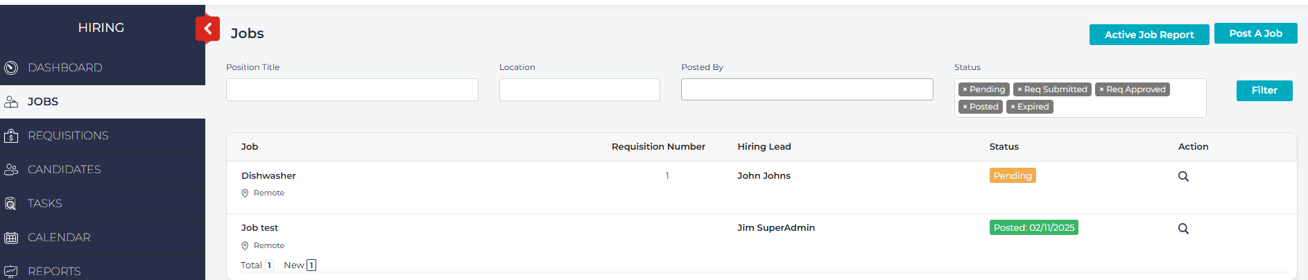 From the Jobs page, you can see your list of all posted jobs.