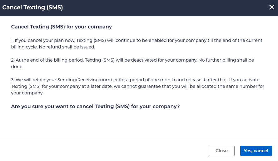 - Review the information window. If you still wish to cancel, select Yes, cancel.