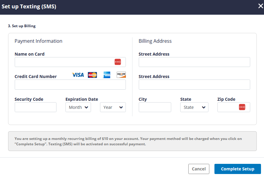 - Review the introduction on the new window, then select Set up Texting (SMS).