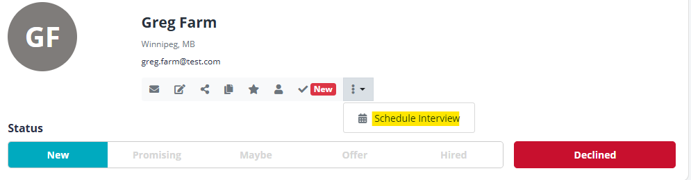 Next select Schedule Interview from the list of icons under the candidate’s name.