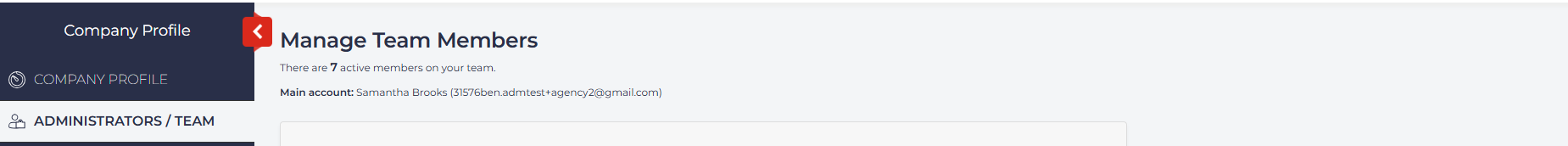 Select Administrators/Team from the left navigation menu.