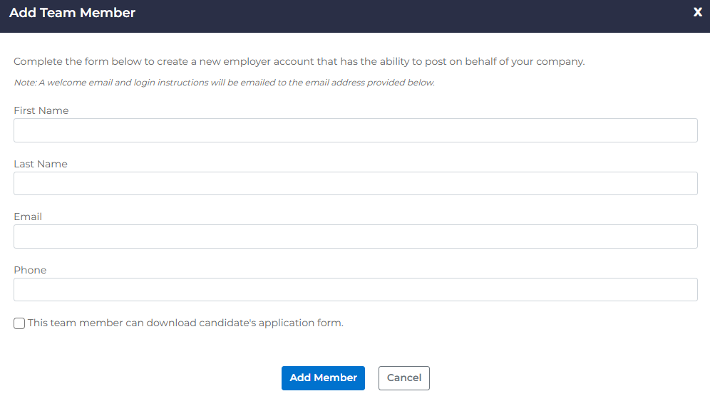 You have the option of setting up additional administrators so that other people at your company can help manage the hiring process.