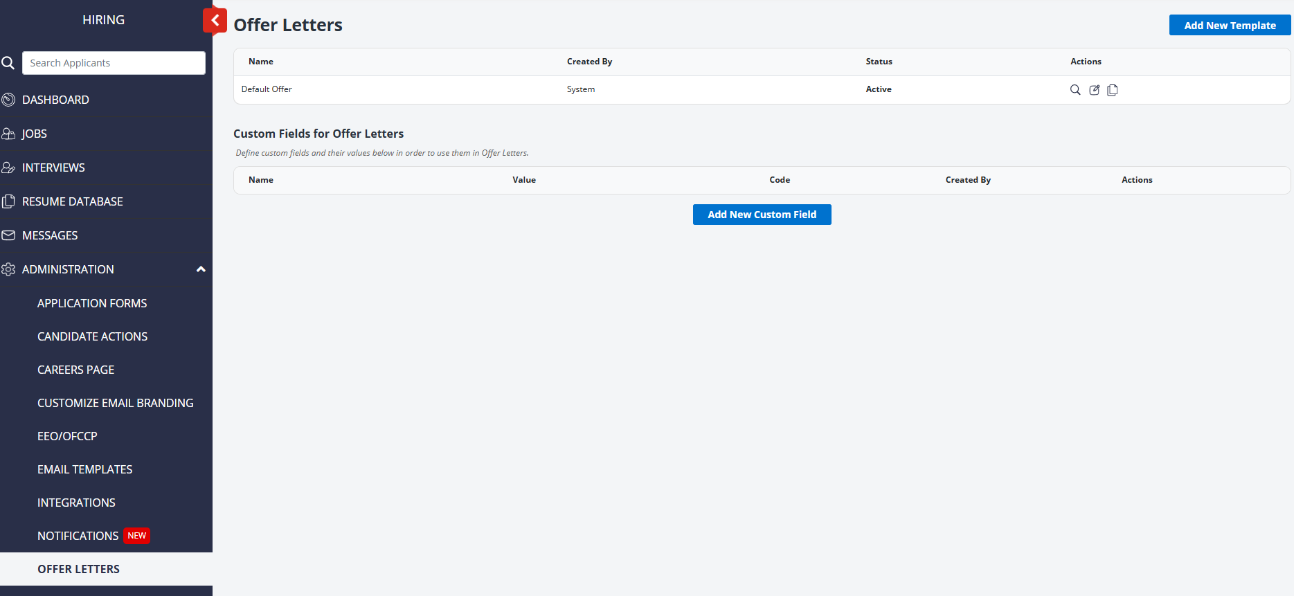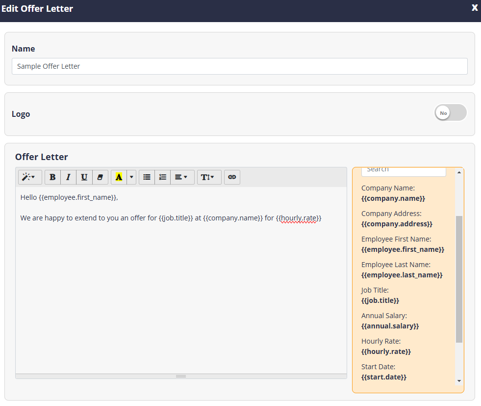 You can set up some standard offer letter forms to use when you wish to extend a hiring invitation to an applicant.