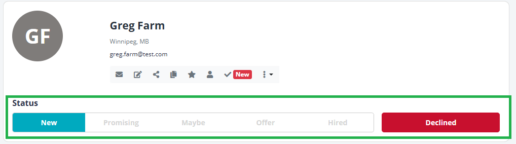 - Share Candidate: Share the candidate's application with a colleague.