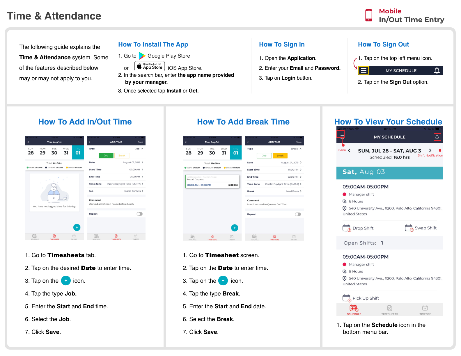 Mobile In / Out Time Entry Download a PDF of the Mobile In/Out Time Entry guide. Mobile_In_Out_Time_Entry.png 400 KB Download Mobile_In_Out_Time_Entry.pdf 1 MB Download