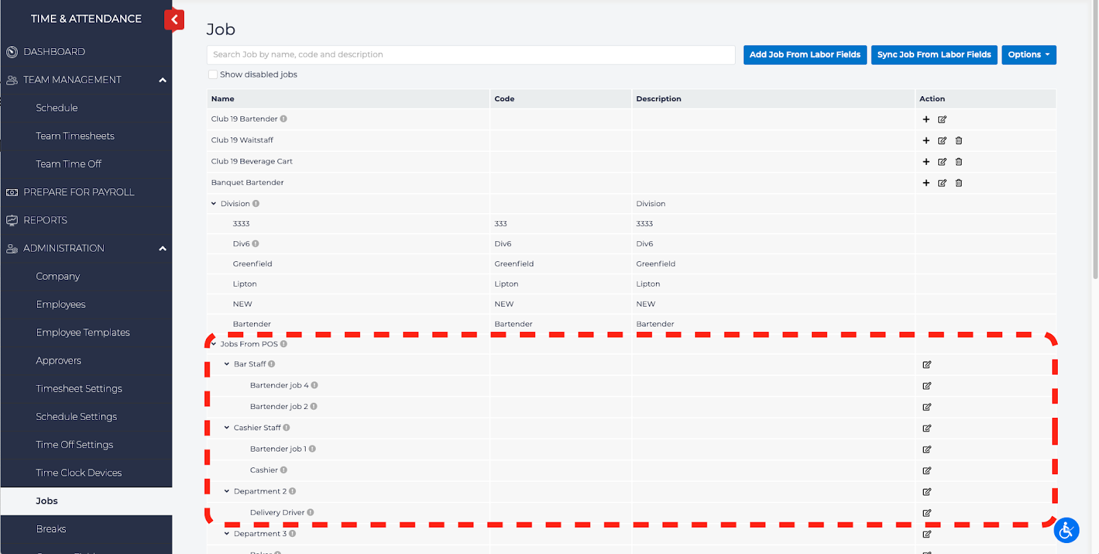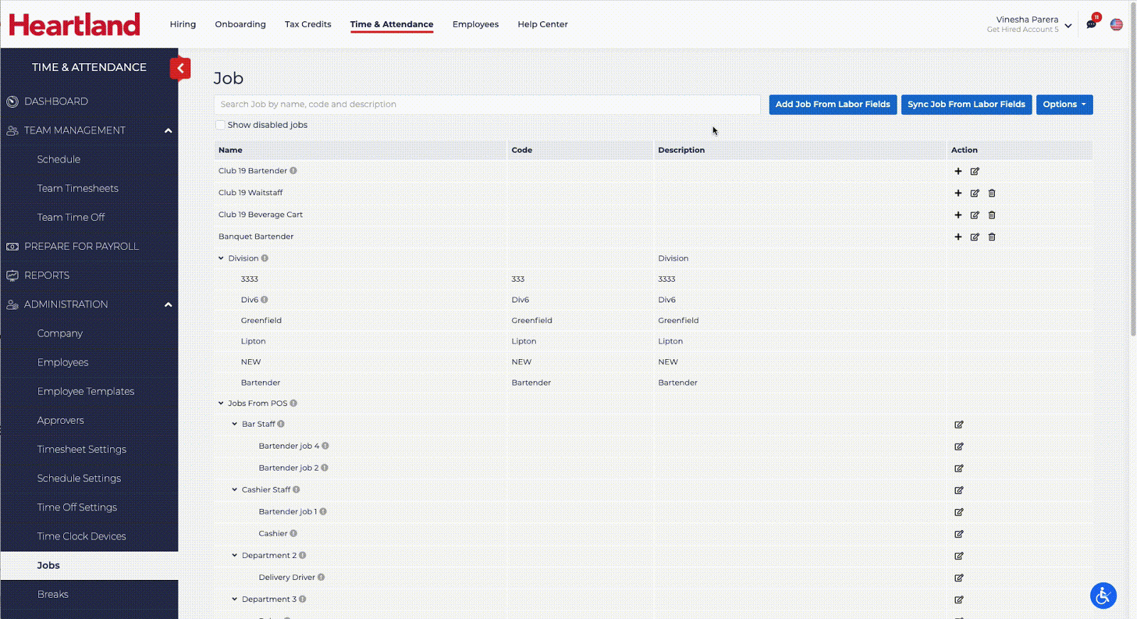 - The Job Types from Heartland Restaurant listed will be organized under Jobs from POS.