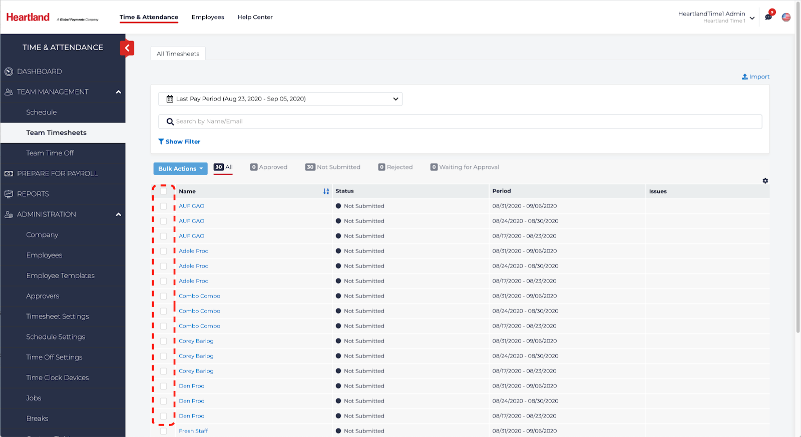 - Select Team Management > Team Timesheets.