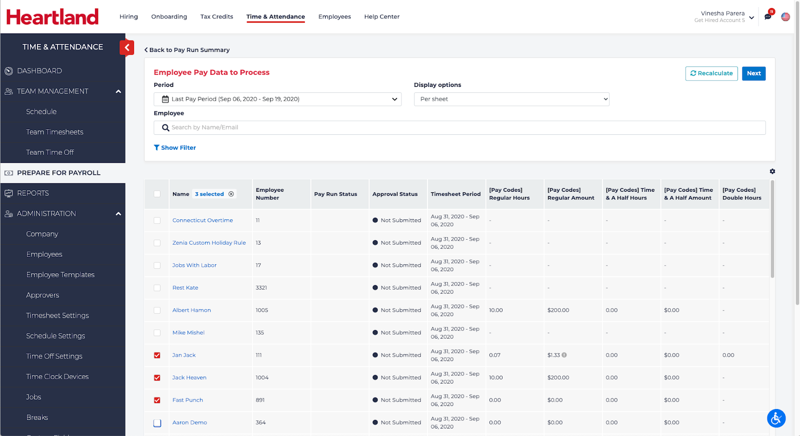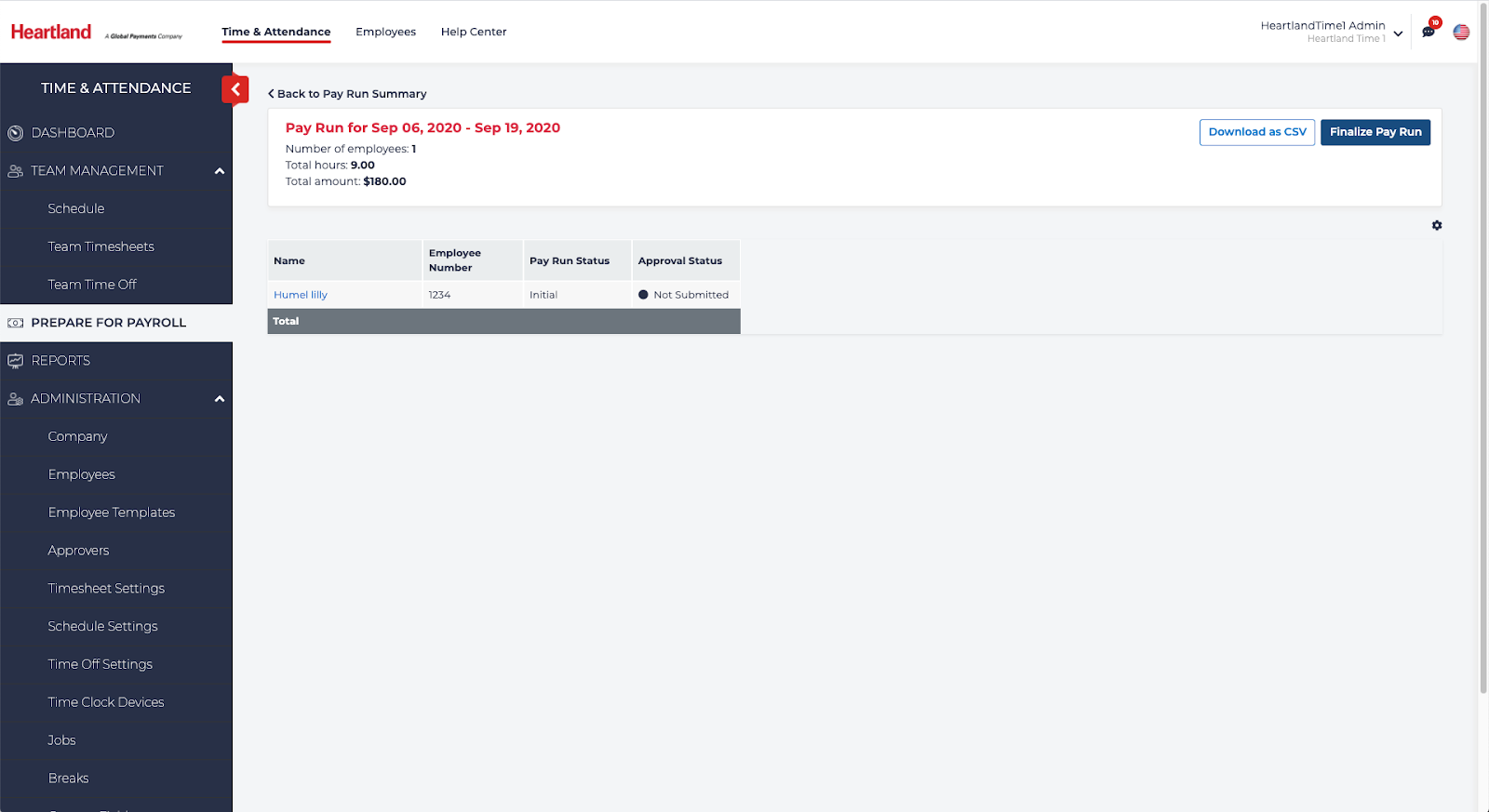 - Login to Heartland Time.