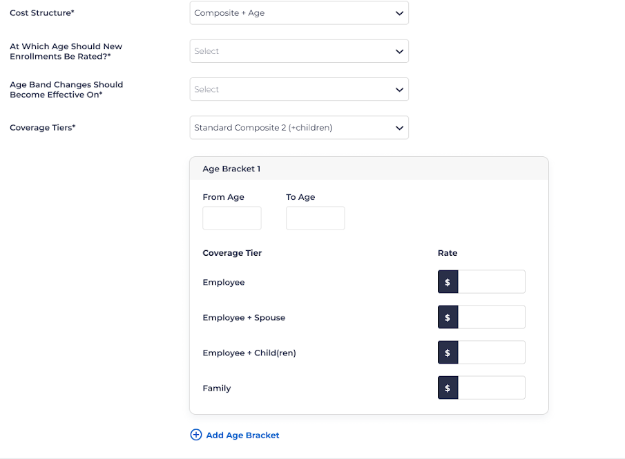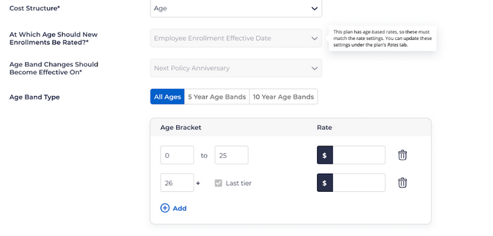 Once you have selected the coverage option, you will see the tiers and rate settings below: