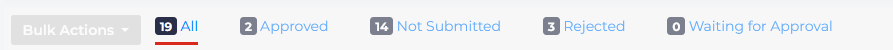 You also have the ability to view timesheets by status, including All, Approved, Not Submitted, Rejected, or Waiting for Approval.