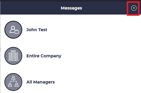 There are several ways of sending a message. You can send a message to the entire company or to all managers by using one of the icons on the screen, or to any people who you have messaged before. By clicking on any of this will bring up the full message history with this person.